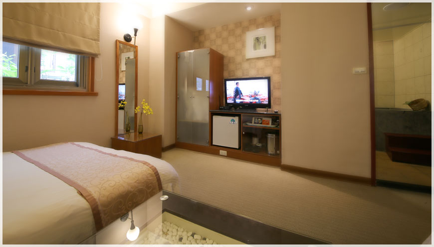 適合兩人居住,享受溫馨風格的感覺 ( 觀音石石砌湯池、 義大利PERLA按摩浴池 )